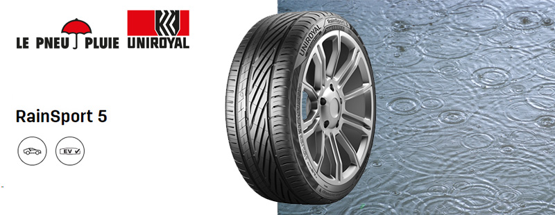 El neumático de verano Uniroyal RainSport 5 ofrece unas excelentes prestaciones de conducción tanto en seco como en mojado. La seguridad está garantizada cuando la carretera está mojada, incluso a altas velocidades, gracias a la tecnología Shark Skin y a un dibujo asimétrico de la banda de rodadura que evacua eficazmente el agua. Es ideal para coches deportivos.